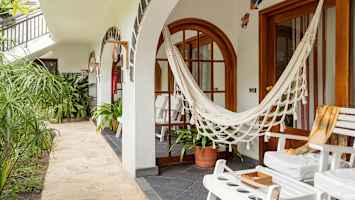 - Balkong eller terrasse (noen balkonger har en svalgang foran, der andre gjester passerer)