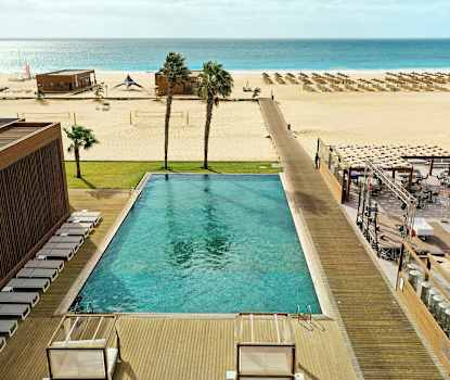 Robinson Cabo Verde har to bassengområder med solsenger. Ved relax-bassenget er det et tak som skjermer mot solen. På hotellets del av stranden tilbys gjestene gratis solsenger og parasoller.
