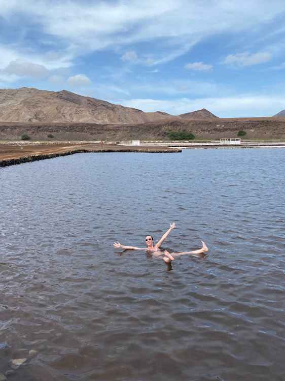 – Vannet inneholder 26 % salt, og jeg kan bekrefte at du flyter som en kork. Å bade her er en spesiell og morsom opplevelse som er verdt å få med seg. Vi besøkte saltsjøen på en av Vings utflukter på øya, forteller Helene.