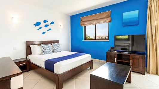 Sol Dunas Family Fun tilbyr lyse og moderne rom for opptil fire personer, alle med balkong eller terrasse. For deg som ønsker ekstra plass, finnes det rom med to soverom og oppholdsrom.