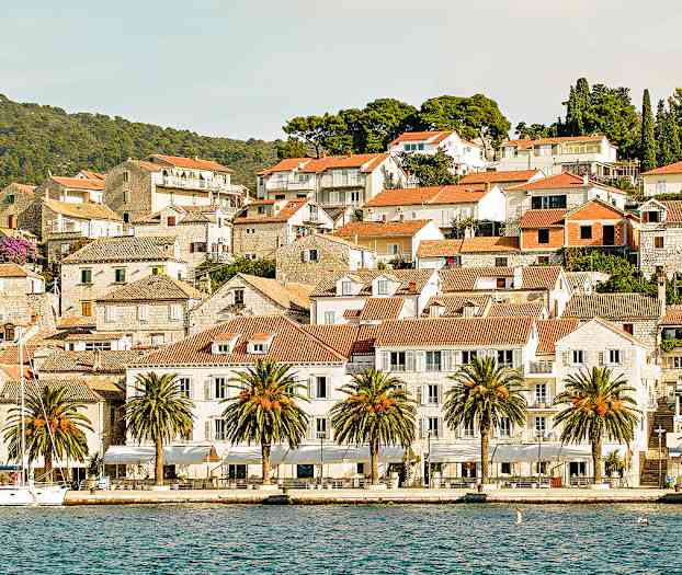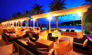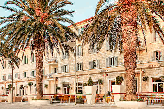 Hotellet ligger rett ved havnepromenaden og det livlige båtlivet. Fra restaurantens uteservering har du førsteklasses utsikt til luksusyachter, seilbåter og det stadig skiftende folkelivet. Det er et perfekt sted å slå seg ned med en kopp kaffe, et glass champagne eller noe lett å spise mens du nyter stemningen i Hvar by.