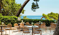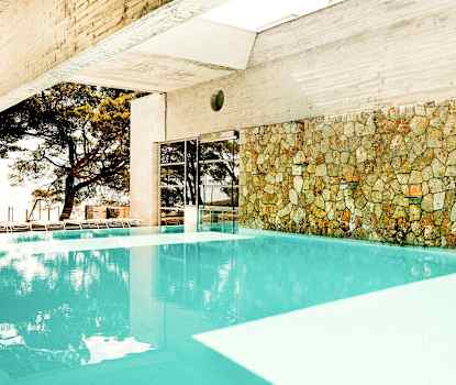 Stort og fint bassengområde som består av et basseng som henger sammen med innendørsbassenget. De er tilsammen ca. 300 m². Ved bryggen nedenfor hotellet er det trapper med rekkverk ned i havet.