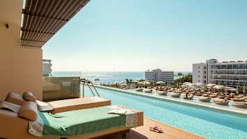 Dublettrom suite med direkte utgang til delt, privat basseng