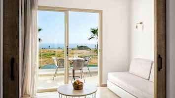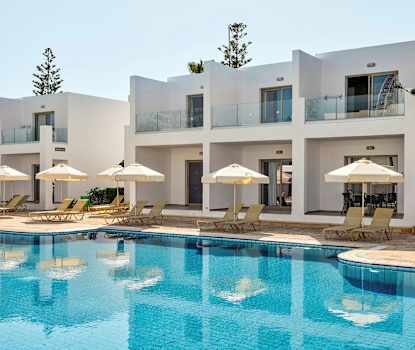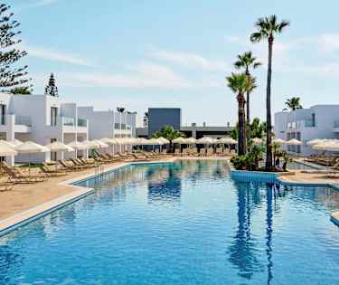 I hjertet av Atlantica Panthea Resort ligger hotellets store og innbydende bassengområde med barnebasseng, solsenger og parasoller.