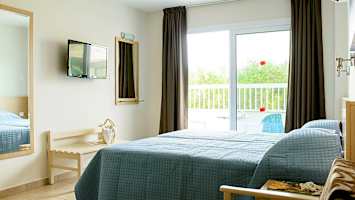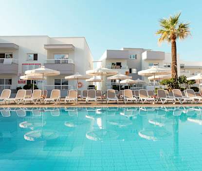 Grecian Bay kalles også Limanaki Beach og er en to kilometer lang sandstrand som begynner ved havnen inne i byen. Nærmest havnen er det litt steinete bunn, mens det er sandbunn lenger bort.
