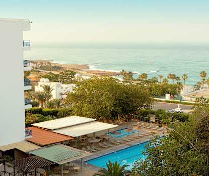 Grecian Bay kalles også Limanaki Beach og er en to kilometer lang sandstrand som begynner ved havnen inne i byen. Nærmest havnen er det litt steinete bunn, mens det er sandbunn lenger bort.