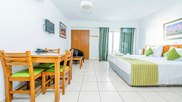 På hotellet er det to flotte bassengområder med et lite barnebasseng, solsenger og parasoller. Hele familien trives her, og hvis du vil kjenne sanden mellom tærne, ligger den herlige Protaras-stranden rett nedenfor hotellet, der du også finner flere restauranter, barer og kafeer. Hotellets populære restaurant er kjent og verdsatt av både gjester og lokalbefolkningen, og her kan du nyte frokost, lunsj og middag. Hotellet har også to barer. Hvis du vil ha en virkelig behagelig ferie, kan du bestille en av våre rimelige måltidspakker.