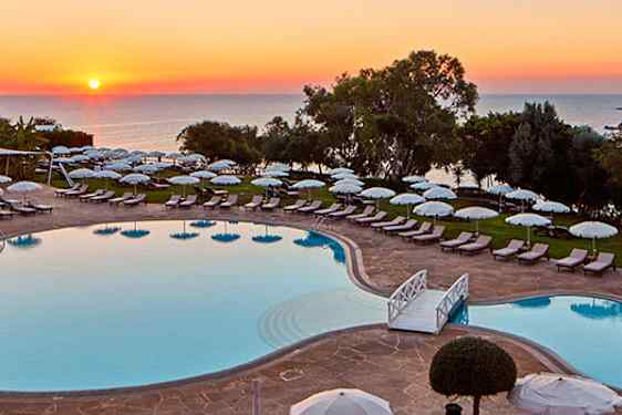 Grecian Park Hotel har lyse, moderne rom med balkong, og for den beste utsikten bestiller du et rom med havutsikt.