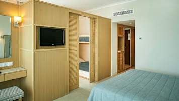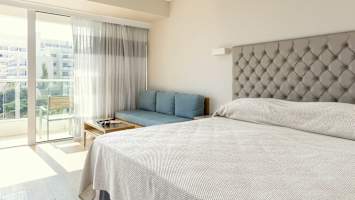 På Sunrise Beach Hotel bor du i lyse og trivelig innredede rom med balkong, noen med herlig utsikt over havet.