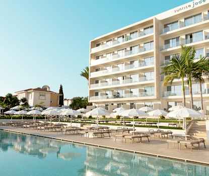 Sunrise Jade Hotel har et stilig bassengområde med to basseng, bassengbar med swim up, solsenger og parasoller. Det ligger en liten sand- og rullesteinstrand nedenfor hotellet.
