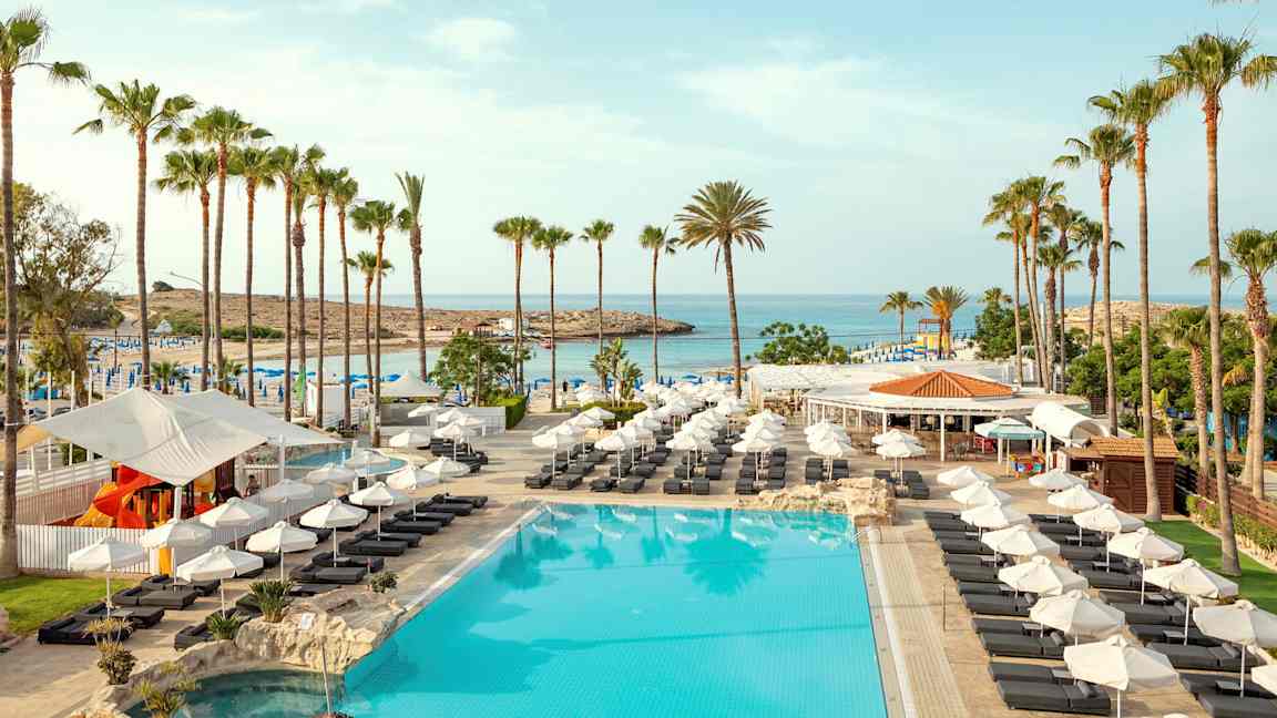 Bo på noen av våre beste familiehotell på Kypros som Sunwing Sandy Bay Beach, Ocean Beach Club med perfekt beliggenhet ved havet og en av Kypros beste strender, eller Rising Star Beach med et herlig bassengområde med vakker utsikt over havet.