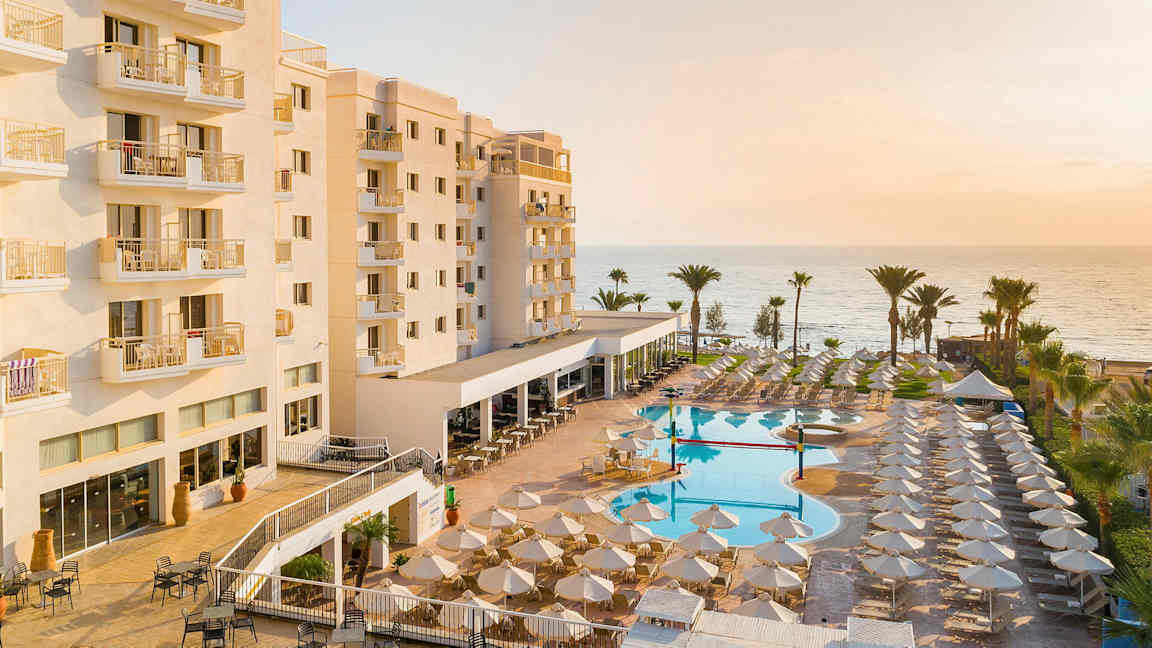 Bo på noen av våre beste familiehotell på Kypros som Sunwing Sandy Bay Beach, Ocean Beach Club med perfekt beliggenhet ved havet og en av Kypros beste strender, eller Rising Star Beach med et herlig bassengområde med vakker utsikt over havet.