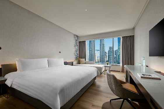 Traders Hotel Kuala Lumpur ligger i hjertet av KLCC, med direkte tilknytning til kongressenteret og rett overfor Petronas Towers. Gjestene får praktisk tilgang til førsteklasses konferanse-, forretnings-, shopping-, underholdnings- og transportfasiliteter. KL Light Rail Train (LRT) er innen gangavstand, og Kuala Lumpur International Airport (KLIA) er en times kjøretur unna. Hotellet tilbyr både fine og uformelle spiseopplevelser, et forretningssenter, et helsestudio, spa, innendørs svømmebasseng og møterom. Spisemulighetene inkluderer to stilige restauranter som serverer asiatisk/vestlig mat og en skybar på taket. Fritidsfasilitetene omfatter et treningsstudio, basseng på taket, spa og en joggeløype i den tilstøtende parken. Hotellets 571 moderne rom og suiter tilbyr utsikt over KLCC Park og Twin Towers. Hvert rom har separat badekar og dusj, en 55-tommers Smart IPTV med Netflix og YouTube, bevegelsessensorstyrt belysning, USB-C- og USB-A-ladeporter, elegant vinylgulv og en koselig dagseng. Vær oppmerksom på at det tilkommer en turistskatt på 10, 00 MYR per rom per natt for utenlandske passinnehavere.