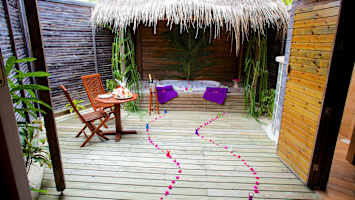 - Badet er delvis åpent mot himmelen og har et boblebad med rainshower-dusj