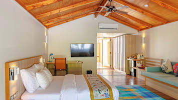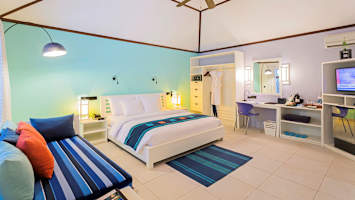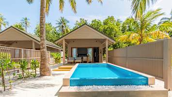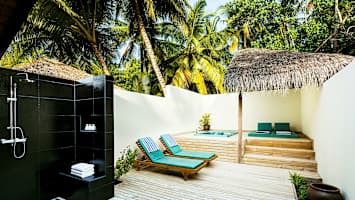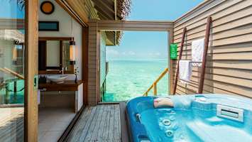 Vil du bo litt ekstra luksuriøst, så kan du bestille en Jacuzzi Water Villa, som har egen solterrasse med badetrapp og magisk kveldssol. Eller så velger du en villa som ligger i behagelig skygge under trærne nær stranden.