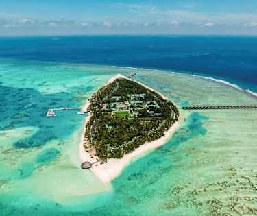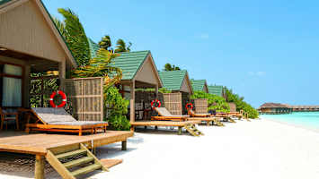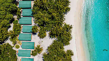 Fine villaer med forskjellig utforming. Du kan velge å bo på stranden eller i en Water Villa med trapp rett ned i vannet.