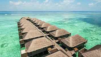 Står på stolper i lagunen og nås via brygger. Villaen har et stort bad, delvis åpent mot himmelen, med tilgang til terrasse med boblebad og trapp ned i vannet. Den har også en større terrasse med magisk utsikt, der er det to solsenger, stoler og bord. Ocean Villas er ca. 85 m² inkludert bad og terrasser.