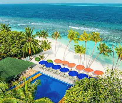 OBLU NATURE har to bassengområder med fin utsikt over Det indiske hav. Hovedbassenget og barnebassenget ligger i tilknytning til treningsrommet og baren, og har en fin treterrasse med solsenger og parasoller. Voksenbassenget ligger på østsiden av øya, ved à la carte-restauranten.