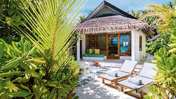 Litt enkelt kan man si at Maldivene er strender. Hotellene ligger ofte ute på øyer som kanskje ikke er mer enn 500 meter fra nord til sør, så du bor aldri langt fra en strand. Sanden er oftest kritthvit og finkornet, hvilket gjør at den ikke blir så varm, selv når solen står på. De fleste øyene omringes av korallrev i en eller annen form, så det er bare å ta på seg maske og snorkel og svømme ut. Det er som å svømme i et postkort; krystallklart vann, hvit sand og smaragdgrønne palmer. Alt mot en bakgrunn av blå himmel. På mange hotell er det også dykkerinstruktører eller marinebiologer som kan vise deg hvordan, og hjelpe deg å forstå hva det er du ser, uansett om det er hjortehornskorall, sjøagurk eller morene.