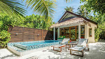 På hotellet er det et stort og fint bassengområde med utsikt over havet. Ved bassengområdet er det et lite barnebasseng og en lekker vannsklie som fører deg rett ut i Det indiske hav. På den lille naboøya Banyan Island ligger det et bassengområde kun for voksne, med solsenger og parasoller.