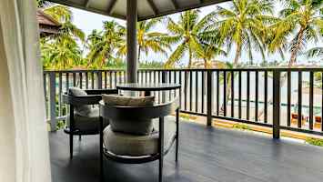 Grand Beach Villa ligger vendt mot havet og har en terrasse som du kan gå rett ut på stranden fra. Badet er åpent mot himmelen. Grand Beach Villas er ca. 80 m² inkludert bad og terrasse.