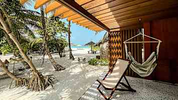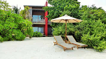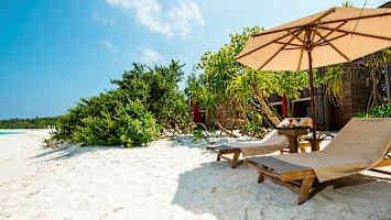 Strandområde med lokaltrafikk. Hotellet ligger på øya Hanimaadhoo i nordlige Maldivene. Hanimaadhoo er, med maldiviske målestokk, en relativt stor øy med omtrent 2 500 innbyggere. Du bør respektere lokale kleskoder på Maldivene når du oppholder deg utenfor hotellet. Ved besøk på offentlige strender eller i landsbyen på øya må du ha på klær som dekker knær og skuldre, som for eksempel t-skjorte og skjørt eller lang shorts. På hotellet ligger det en butikk som selger klær og suvenirer.