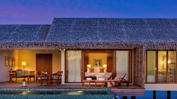 Strandområde. Fra hotellet er det en bro over til nabohotellet The Residence Dhigurah. Fra Falhumaafushi er det ca. 4 km til de lokalbefolkede øyene Maamendhoo och Nilandhoo.