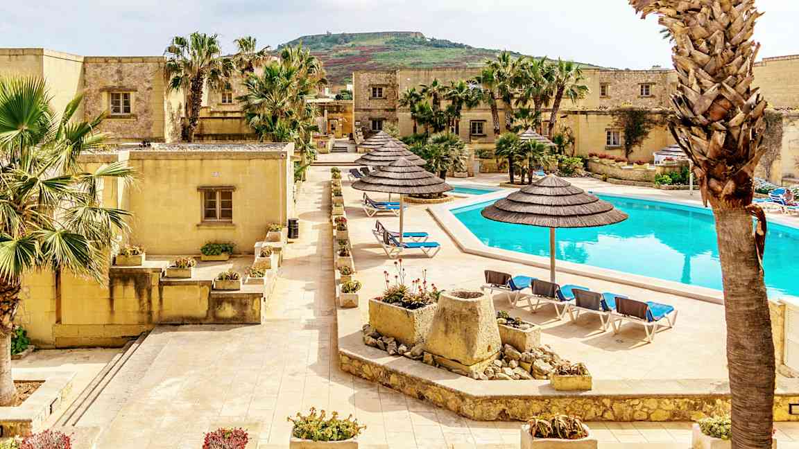 Ving har en rekke hotell å velge mellom på Gozo. Vi tilbyr hotell rundt på hele øya, fra hovedstaden Victoria, midt på øya, og til kystbyene Marsalforn og Xlendi. På Gozo kan du velge om du vil bo i rom eller leilighet, og noen av hotellene har basseng.