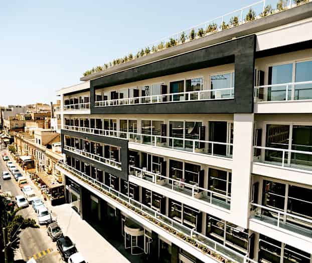 The George, Urban Boutique Hotel ligger like ved fornøyelsesområdet i St. Julians. I kort gangavstand fra hotellet ligger marinaen Portomaso og havnen ved Spinola Bay , der den flere kilometerlange strandpromenaden begynner og strekker seg hele veien til Sliema..