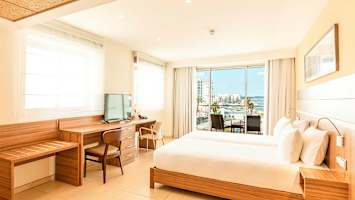 Doubletree by Hilton Malta tilbyr delikate rom for opptil seks personer, og for ekstra ferieluksus kan du bestille et rom med havutsikt.