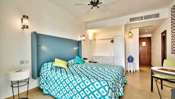 db San Antonio Hotel + Spa har et koselig bassengområde med solsenger og parasoller. På stranden, et stykke bortenfor, er det utleie av solsenger og parasoller.