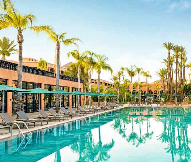 Riu Tikida Garden er et vakkert All-Inclusive hotell med en frodig hage, som ligger i Palmeraie-distriktet i pulserende Marrakech. På det romslige bassengområdet kan du nyte stillheten på en solseng under en parasoll eller ta et forfriskende bad, perfekt i det varme marokkanske klimaet.