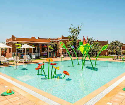 Familierom i marokkansk stil med terrasse og utsikt mot hagen. Her finner du enten en stor dobbeltseng (king size) eller to enkeltsenger.