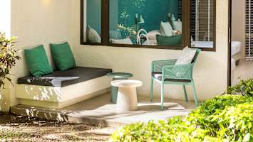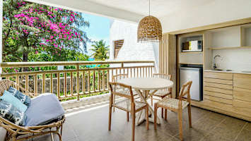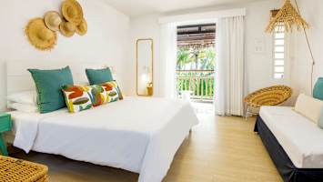 Rommene er lyse og vakkert innredet med aksentfarger i blått og turkis, som tar igjen fargene i havet og de frodige omgivelsene, og har plass til opptil fire personer. Vil du utforske mer av Mauritius, ligger hotellet mellom fiskerlandsbyen Cap Malheureux og det mer livlige Grand Baie. Hit kommer du deg enklest med taxi..