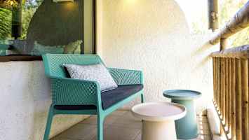 Familierom deluxe er romslige rom med lun atmosfære og fargerik innredning i litt mørkere grønne og turkise nyanser. På balkongen eller terrassen kan du sitte og slappe av med en kopp kaffe og nyte ferien og stillheten.