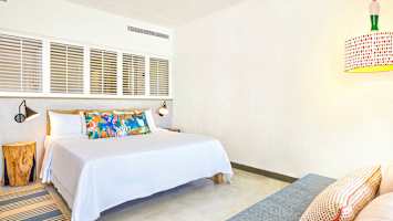 Rom med moderne design i rustikk stil med fine detaljer i treverk. På grunn av de stråkledde takene får man følelsen av å bo i en strandhytte, bare med alle tenkelige fasiliteter og bekvemmeligheter.