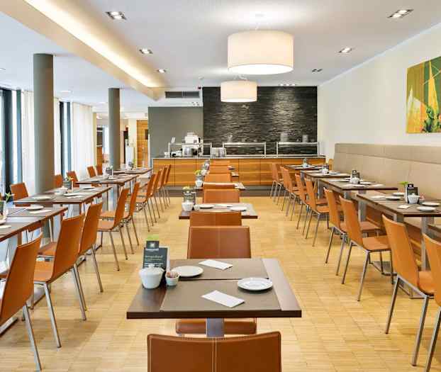 Four Points Flex by Sheraton Vienna Hauptbahnhof en hyggelig uteservering i hagen, der du kan nyte hotellets bufféfrokost. Hotellrommene er pent innredet med enkel møblering.