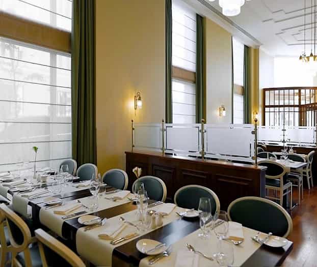 På hotellet er det restaurant, bar, romservice, treningsrom og konferanserom.