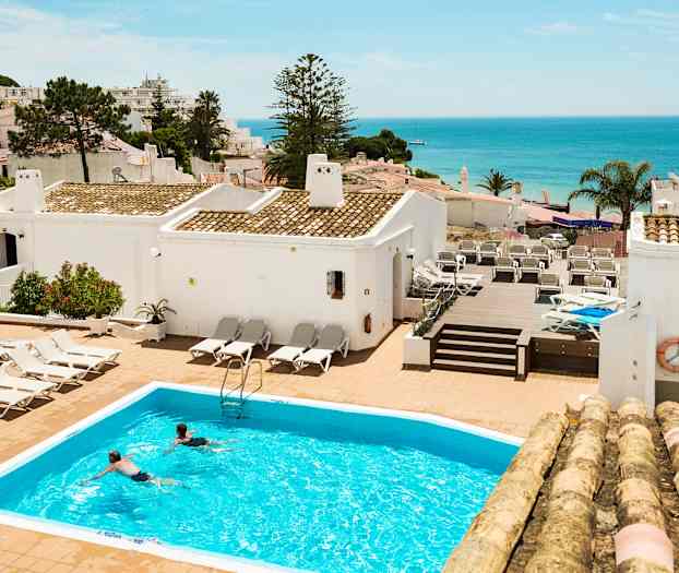 3HB Golden Beach er et hyggelig leilighetshotell med flere små, hvitkalkede bygninger som ligger spredt på et område som en liten ferielandsby. Her kan du nyte et herlig ferieopphold enten du reiser alene, med en venn, kjæreste eller hele storfamilien. På 3HB Golden Beach finner du et innbydende bassengområde med basseng for både voksne og barn, bassengbar med servering av kald drikke og snacks samt et boblebad for ekstra avkobling. Vil du bade i havet, ligger en av Algarvekystens nydelige strender, Praia da Oura, bare hundre meter unna.