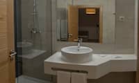 Rommene har tv, safe, kjøkkenkrok, mikro, kjøleskap og bad.