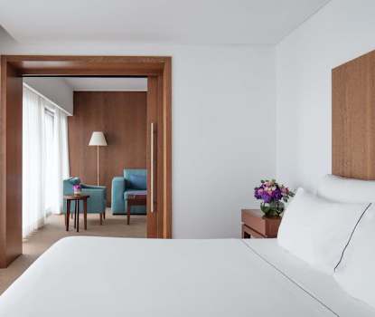 Juniorsuiter og Deluxe juniorsuiter har også separat stue og badekåpe.