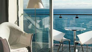 Nesten helt ytterst på klippen ligger det et lekkert infinitybasseng med solterrasse, solsenger og parasoller. Og helt ytterst ligger bassengbaren, der du kan sitte og nyte den herlige stemningen, den fantastiske utsikten og solnedgangen.