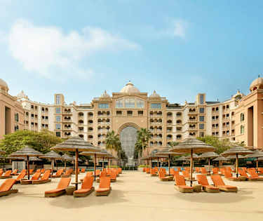 Innbydende rom i varme farger. Balkong med havutsikt mot Marsa Malaz, hotellets private øy, og Persiabukta. Rommet har enten en stor dobbeltseng (king size) eller to enkeltsenger.