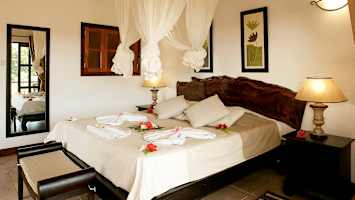 Hjemmekoselige rom med uteplass mot hotellets omgivelser.