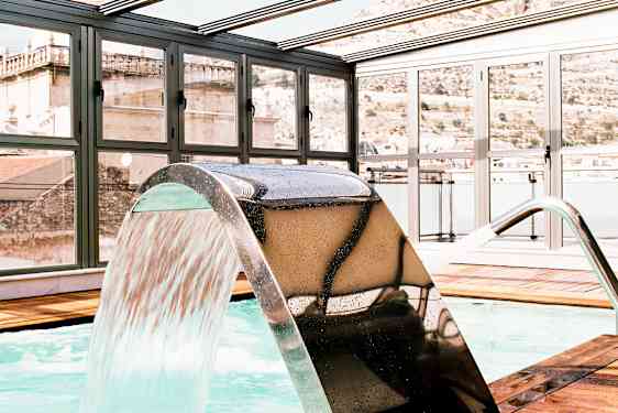 På hotellets takterrasse ligger det en loungebar hvor du på sommeren kan nyte en god drink og fantastisk utsikt over Alicante. Her ligger også hotellets oppvarmede basseng som er innglasset på vinterstid. Hotellet har også et spa med badstue og velværebehandlinger for hele kroppen – perfekt når du trenger ekstra avkobling i ferien. Føler du for å røre på deg kan du benytte treningsrommet og apparatene der, eller du kan ta en løpetur på havnepromenaden som ligger like ved.
