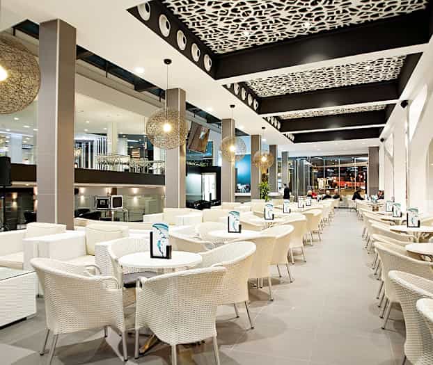 Hotellet har en bufférestaurant og to barer som serverer både drikke og snacks. Frokostbuffé er inkludert i reisens pris, og hvis du vil gjøre ferieoppholdet enda mer behagelig kan du kjøpe til halv- eller helpensjon. Føler du for å kompensere for mye god mat og drikke, kan du ta en tur i treningsrommet på hotellet og kanskje slappe av i badstuen etterpå.