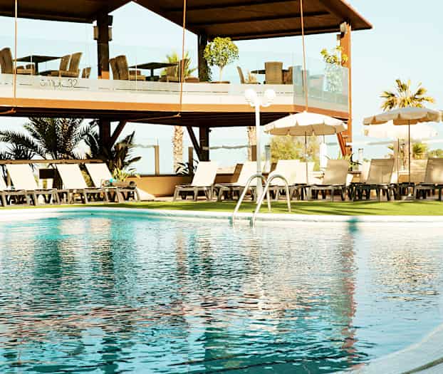 Blau Parc er et hyggelig leilighetshotell i de øvre delene av San Antonio. Om dagen kan du bade i bassenget og om kvelden kan du beundre den vakre solnedgangen fra hotellets bar. Stranden rett nedenfor hotellet er liten og smal. Du kan også rusle ned til stranden i San Antonio. Langs gatene ned mot sentrum og marinaen i San Antonio er det et herlig folkeliv med mange trivlige lokale restauranter og barer.