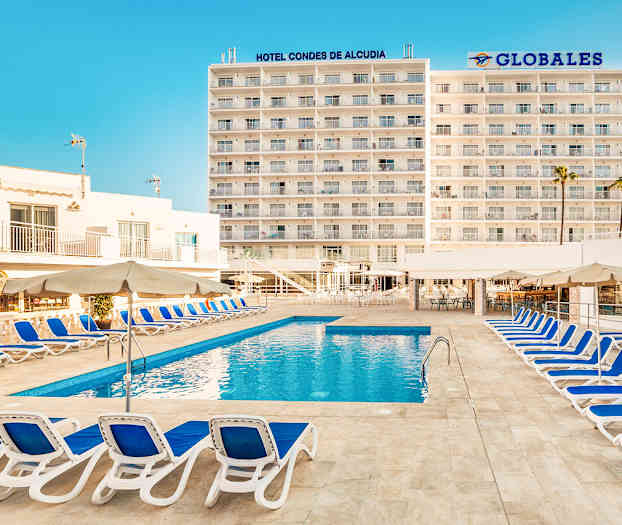 Globales Condes Alcudia er et stort, enkelt All Inclusive-hotell med perfekt beliggenhet nær sentrum og stranden i Alcudia. Her får du en herlig og avslappende ferie med sol, bading og nærhet til strandpromenaden og vakre omgivelser. Hotellet har et innbydende bassengområde med solsenger og parasoller, hvor du kan slappe av og nyte solens stråler mens du koser deg med noe godt å drikke fra baren. Det finnes også en restaurant som serverer alle dagens måltider. Globales Condes Alcudia arrangerer underholdning hver dag i uken for hele familien, med blant annet liveopptredener og dans.