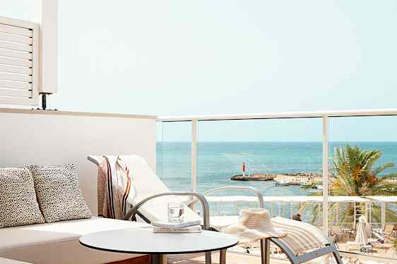 Perfekt beliggenhet, nærme flyplassen, og rett ved havet med en herlig strandpromenade. Hotellet ligger også nærme Palma by, og det er enkelt å ta seg dit med bil, buss eller sykkel. Hotellet er veldig funksjonabelt og fresht. I fjor fotograferte jeg hotellets nye balkonger i 1. og 5. etasje, som alle har fått en utendørs ”stue” med sofaer og solsenger – vi elsker jo å være ute!