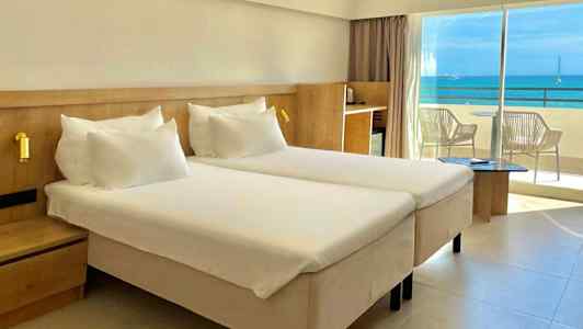Rommene og juniorsuitene er lyse og moderne, innredet i naturlige fargetoner med en tydelig følelse av Middelhavet. Hotellet har to restauranter med havet som nærmeste nabo – en bufférestaurant som byr på middelhavssmaker til frokost og middag, og en moderne bistro der lokale råvarer møter internasjonale impulser i en avslappet atmosfære.